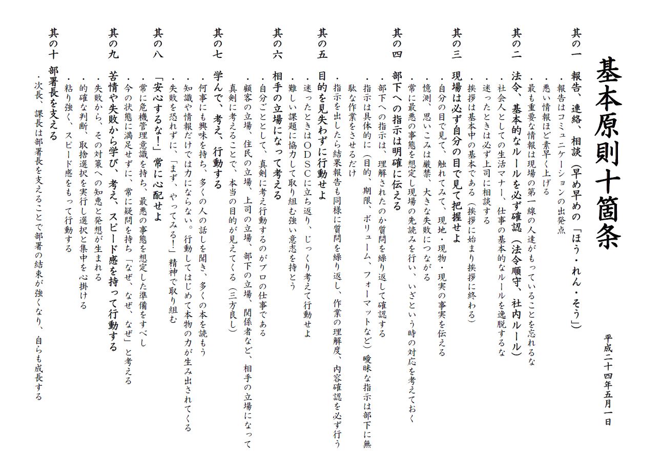 会社は、経営トップ及び構成する従業員が共有する価値観と信念、そして、それを基にした「行動」の集合体であり、その行動は組織や企業文化、そして地域社会に少なからず影響を与えると考えます。一人ひとりがこの行動規範を昇華し実行することで社会的責任を果たし、持続可能な社会の構築に貢献してまいります。
